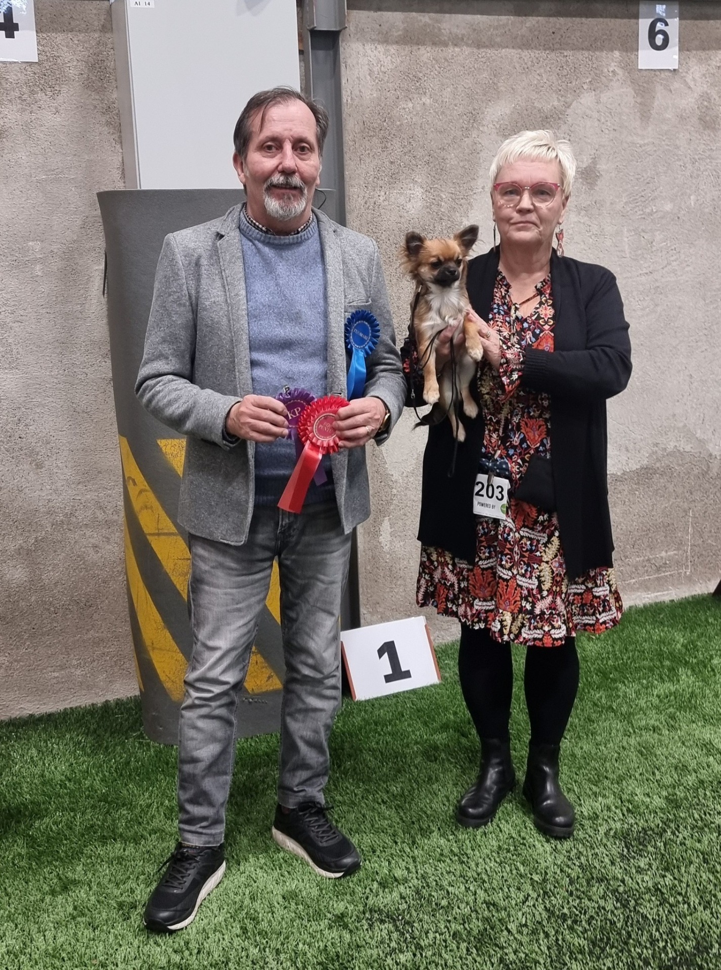 Tuomareina arvostetut chihuahua erikoistuomarit Gabriella ja Samuel Carlid (kennel Small Is Beautiful's) Ruotsista.